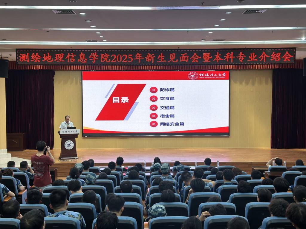 为进一步深入贯彻落实立德树人根本任务,切实践行“为党育人、为国育才”的初心使命,9月8日,学院在雁山校区图书馆报告厅举办举办2025级本科生新生见面会暨专业介绍会。学院领导、教研室主任、科室负责人、全体辅导员、2025级班主任参与了本次活动,活动由2025级辅导员王煦主持。