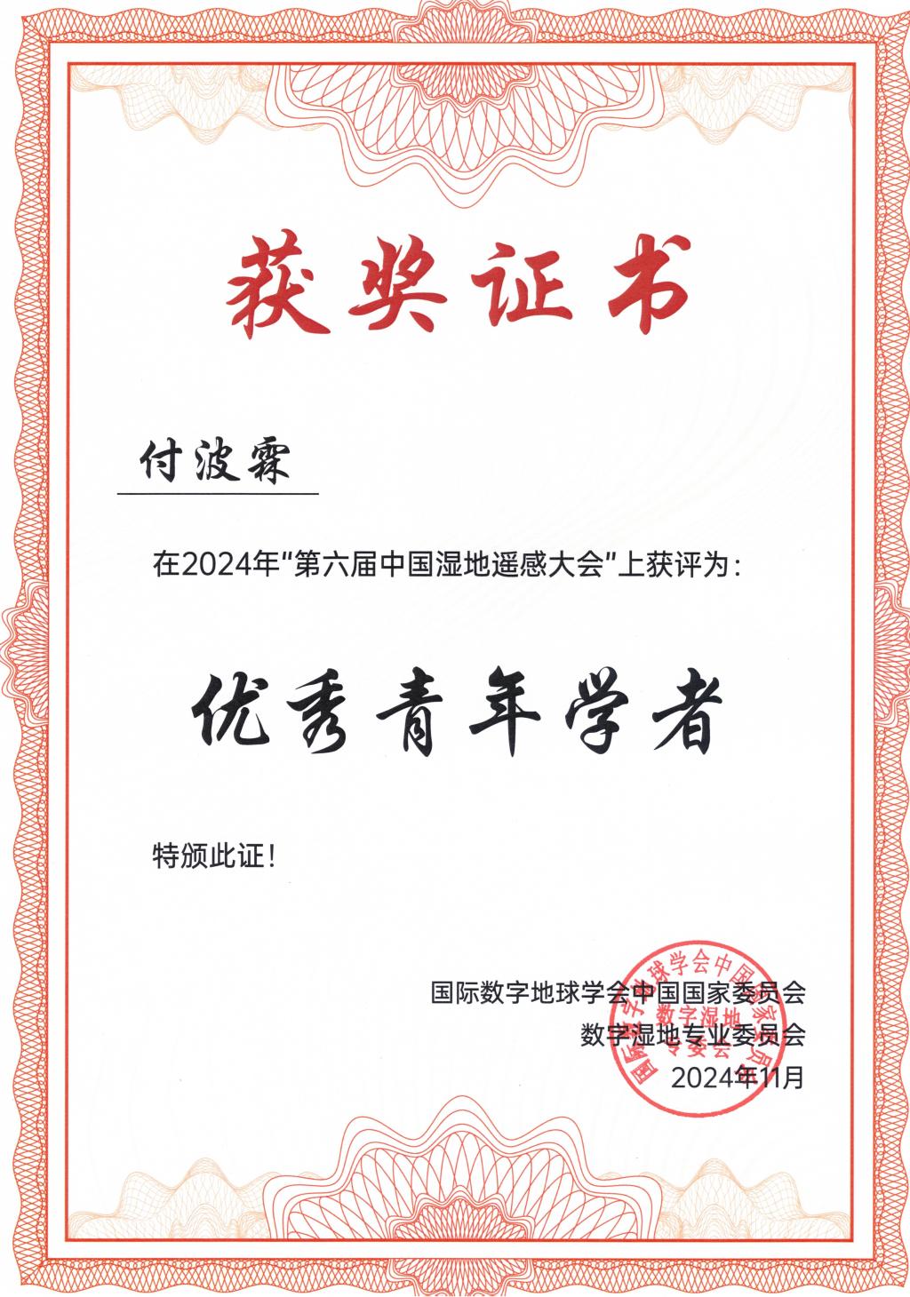 付波霖获第六届中国湿地遥感大会“优秀青年学者”荣誉称号
