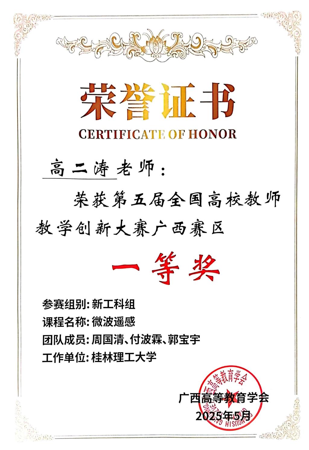 高二涛获第五届全国高校教师教学创新大赛广西赛区一等奖