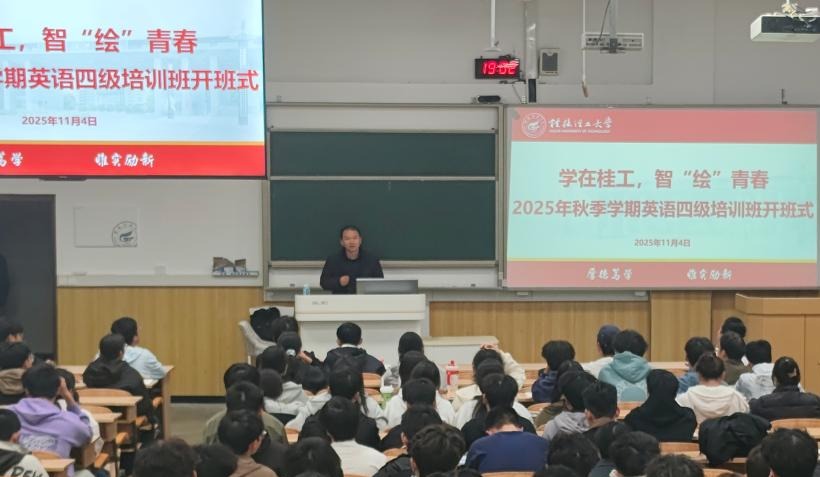 为了进一步加强学院学风建设,针对性地解决学生英语备考难点,提升英语水平,11月4日,我院2025年秋季学期英语四级培训班在雁山校区正式开班。本次培训面向全院各年级报考英语四级的学生,共吸引220余名同学报名参与,学院党委副书记李永伟、相关年级辅导员出席开班仪式。