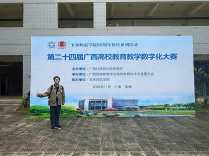 第二十四届广西高校教育教学数字化大赛于2025年11月1-2日在玉林师范学院举行,我院教师姜建武获得大赛一等奖,并以“本科 理工课程组”总分排名第一的成绩在大会闭幕式做优秀作品分享交流。